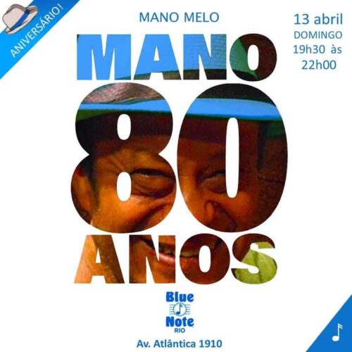 – DIA 13 de ABRIL, DAS 19h30 ÀS 22h, “MANO 80 ANOS”, comemoração de aniversário do amigo e maravilhoso poeta MANO MELO, com o relançamento de seu primeiro livro: “O EVANGELHO DE JIMI RANGO” (Hanoi Editora). Uma grande festa, com direito a sarau! Local: Blue Note, Av. Atlântica, 1910.  IMPERDÍVEL!