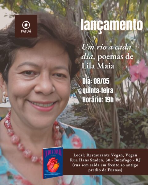 – DIA 08 DE MAIO, ÀS 19h, “UM RIO A CADA DIA” (Patuá), poemas da excelente LILA MAIA. Local: Restaurante Vegan, Vegan, Rua Hans Staden, 30, Botafogo, em frente ao antigo prédio de Furnas. PRA QUEM GOSTA DE BOA POESIA, IMPERDÍVEL!