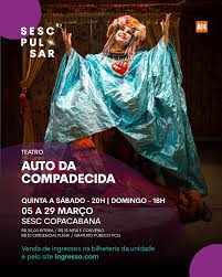 – ATÉ 29 DE MARÇO, “AUTO DA COMPADECIDA”, de ARIANO SUASSUNA. Direção: GABRIEL VILLELA, com o GRUPO MARIA CUTIA, em comemoração aos 20 anos da companhia de Belo Horizonte. Local: Sesc Copacabana. Quinta a sábado, às 20h; domingo, às 18h. R$ 30,00.