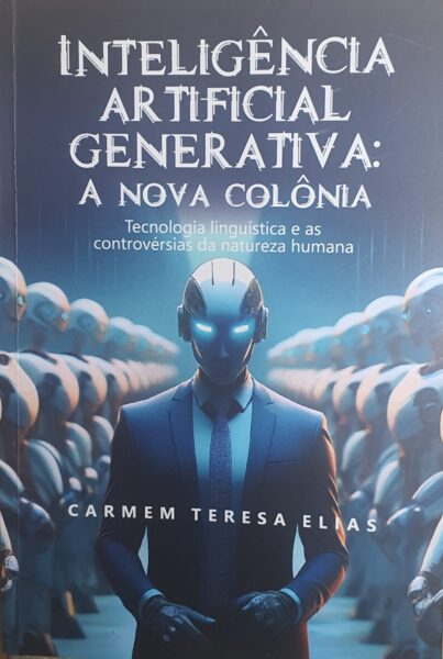 O segundo livro a ser indicado é de autoria de CARMEM TERESA ELIAS: “INTELIGÊNCIA ARTIFICIAL GENERATIVA: A NOVA COLÔNIA – Tecnologia linguística e as controvérsias da natureza humana”. A autora é docente, pesquisadora e palestrante em Literatura Comparada e Análise de Gêneros Textuais, pós-graduada em Letras pelas universidades de Cambridge, UFF, UERJ e Gama Filho. É, também, artista plástica. Tem doze livros literários publicados, abrangendo, conto, romance juvenil, poesia, dramaturgia etc. É premiada pelo Consulado da Itália, Feira do Livro de Genebra, entre outras premiações.