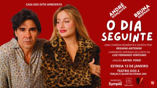 – ATÉ 11 DE FEVEREIRO, “O DIA SEGUINTE”, inspirada em conto de VERÍSSIMO. Com ANDRÉ GONÇALVES e BRUNA GRIPHAO. Texto: REGIANA ANTONINI. Direção: RAFAEL PONZI. Local: Teatro dos Quatro, Shopping da Gávea. Terça e quarta, às 20h. R$ 120, 00.
