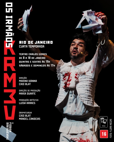– ATÉ 18 DE JANEIRO, “OS IRMÃOS KARAMÁZOV”, de DOSTOIÉVSKI. Direção: MARINA VIANNA e CAIO BLAT, que também atua. Local: Teatro Carlos Gomes. Praça Tiradentes. Quinta e sexta, às 19h. Sábado e domingo, às 17h. R$ 80,00.