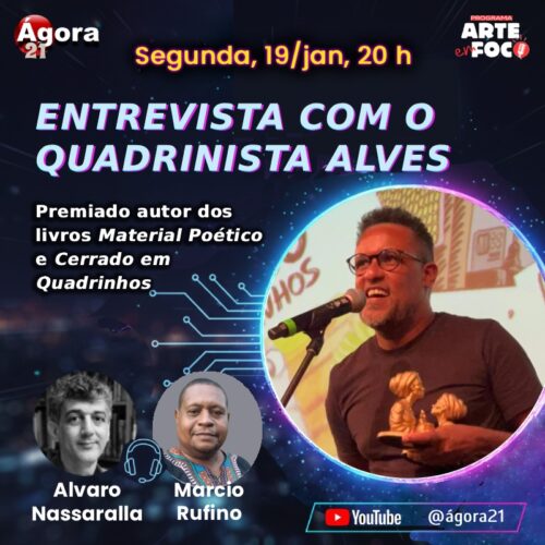 – DIA 19 DE JANEIRO, ÀS 20h, “ENTREVISTA COM O QUADRINISTA ALVES”, com ALVARO NASSARALLA e MARCIO RUFONO. Local: YouTube: @ágora21