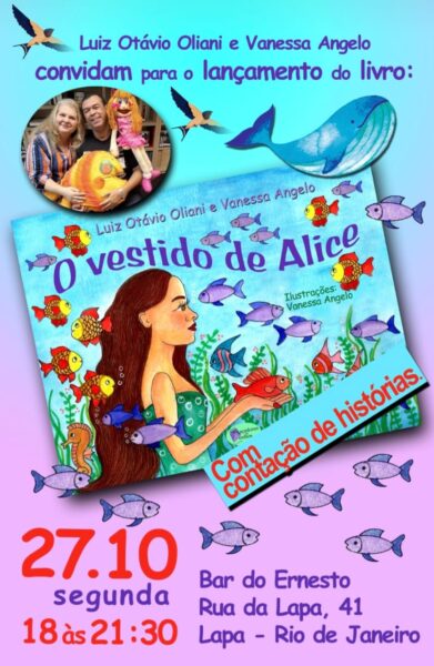 DIA 27 DE OUTUBRO, DAS 18h ÀS 21h30, “O VESTIDO DE ALICE”, de LUIZ OTÁVIO OLIANI e VANESSA ANGELO, ilustrações da autora. Haverá contação de histórias. Local: Bar do Ernesto, Rua da Lapa, 41, Lapa.