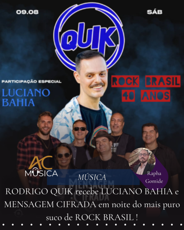 – AMANHÃ, DIA 09 DE AGOSTO, a partir das 19h, RODRIGO QUIK leva seu novo show “40 anos de Rock Brasil” ao Coordenadas Bar (Rua da Passagem, 19, Botafogo). Clique no post abaixo para ver os convites de Luciano Bahia e Rodrigo Quik.