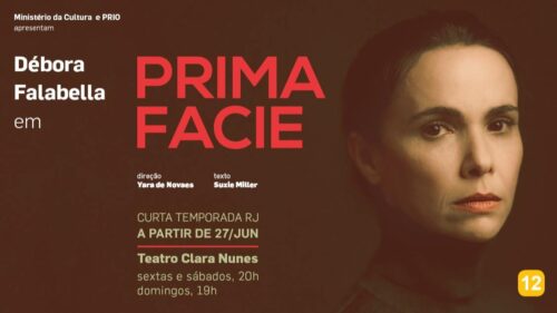 – ATÉ 17 DE AGOSTO, “PRIMA FACIE”, com DÉBORA FALABELLA. Texto: SUZIE MILLER. Direção: YARA DE NOVAES. A montagem recebeu 7 indicações ao Prêmio APTR, e rendeu à atriz os Prêmios Shell, APCA e Arcanjo. Local: Teatro Clara Nunes, Shopping da Gávea. Sexta e sábado, às 20h; domingo, às 19h. De R$ 75,00 a R$ 150,00.