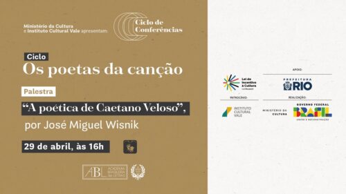 – DIA 29 DE ABRIL, ÀS 16h, CICLO DE CONFERÊNCIAS “OS POETAS DA CANÇÃO”: “A POÉTICA DE CAETANO VELOSO”, por JOSÉ MIGUEL WISNIK. Coordenação: GERALDO CARNEIRO. Local: ABL.