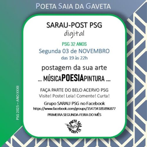 – DIA 03 DE NOVEMBRO, “SARAU-POST PSG” DIGITAL. DETALHES NO POSTER.
