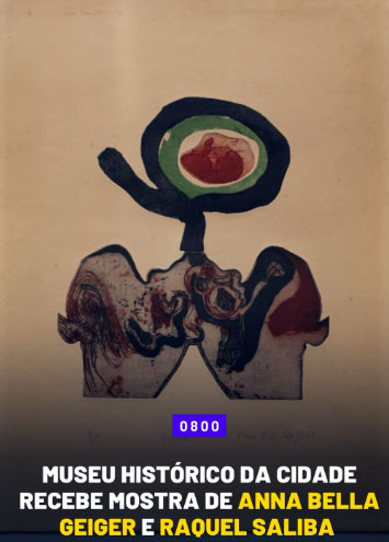 – ATÉ 03 DE MAIO, “AVESSO”, reunindo obras de ANNA BELLA GEIGER e de RAQUEL SALIBA. E, também, “ESPAÇO-TEMPO”, coletiva inspirada em poema de PAULO LEMINSKI. Local: Museu Histórico da Cidade, Parque da Cidade, Gávea. Terça a domingo, das 9h às 16h.