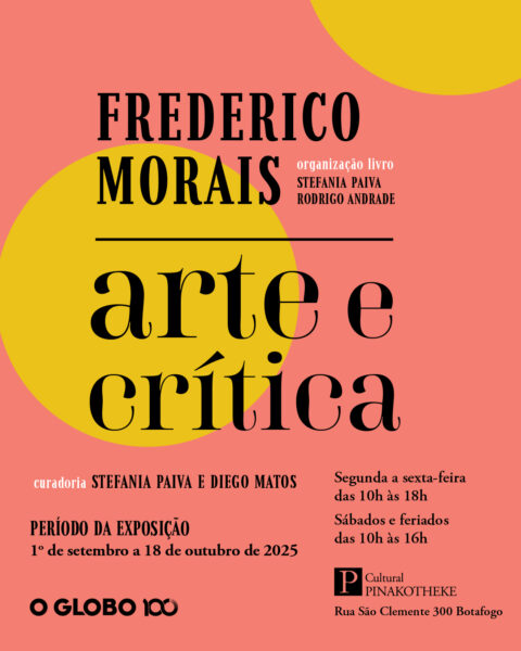 – ATÉ 18 DE OUTUBRO, “FREDERICO MORAIS – ARTE E CRÍTICA”, com 25 obras de 22 artistas, como BEATRIZ MILHAZES, CILDO MEIRELES e RUBEM VALENTIM. E “O INÍCIO DO MUNDO”, com trabalhos de 59 mulheres, como ADRIANA VAREJÃO e LYGIA PAPE. Local: Pinakotheke Cultural, Rua São Clemente, 300, Botafogo. Segunda a sexta, das 10h às 18h; sábado, das 10h às 16h.