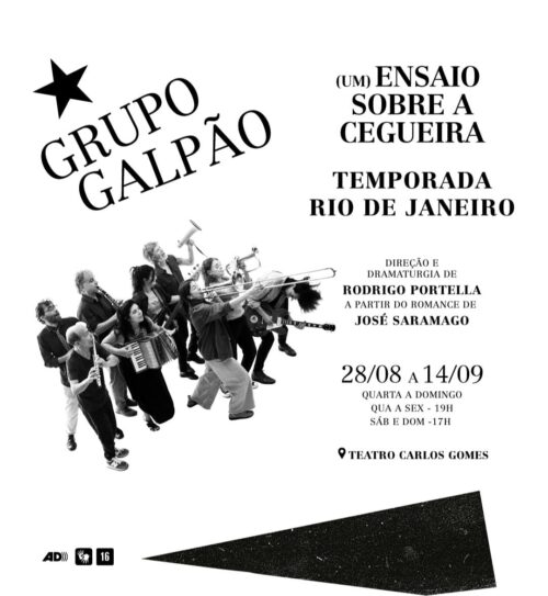 – ATÉ 14 DE SETEMBRO, “(UM) ENSAIO SOBRE A CEGUEIRA”, a partir do romance de JOSÉ SARAMAGO, com o GRUPO GALPÃO. Direção e dramaturgia: RODRIGO PORTELLA. Local: Teatro Carlos Gomes. Quarta a sexta, às 19h; sábado e domingo, às 17h. R$ 80,00.