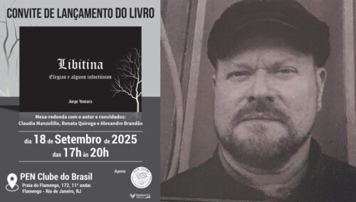 – DIA 18 DE SETEMBRO, DAS 17h ÀS 20h, “LIBITINA – Elegias e alguns infortúnios”, de JORGE VENTURA. Na ocasião, mesa-redonda com o autor, CLAUDIA MANZOLILO, RENATA QUIROGA e ALEXANDRE BRANDÃO. Local: PEN Clube do Brasil, Praia do Flamengo, 172, 11º andar, Flamengo. TODOS LÁ!