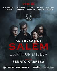 – ATÉ 05 DE OUTUBRO, “AS BRUXAS DE SALÉM”, de ARTHUR MILLER, com CARMO DALLA VECCHIA e VANESSA GERBELLI. Direção: RENATO CARRERA. Local: Teatro Casa Grande, Leblon. Quinta a sábado, às 20h; domingo, às 18h. De R$ 160,00 a R$ 230,00.