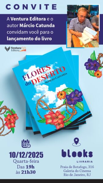 – DIA 10 DE DEZEMBRO, DAS 19h ÀS 21h30, “FLORES DO DESERTO”, de MÁRCIO CATUNDA. Local: Blooks Livraria, Praia de Botafogo, 316, Galeria do Cinema. IMPERDÍVEL!