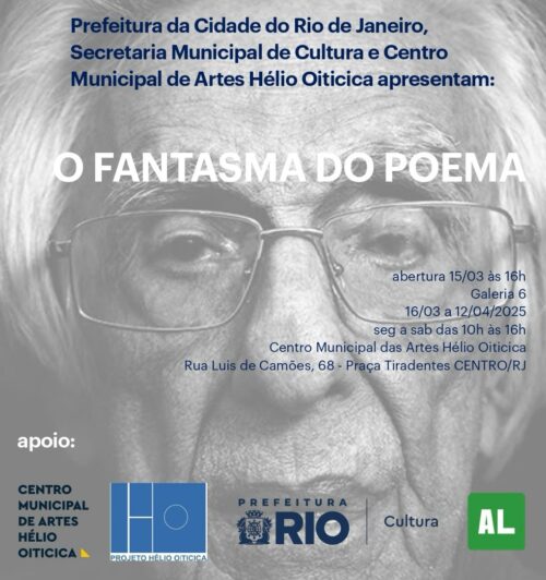 – ATÉ 05 de abril, de segunda a sábado, das 10h às 18h, “CHAMADA DO PROGRAMA HÉLIO OITICICA” apresenta a artista SUYAN DE MATTOS com a obra “FANTASMA DO POETA”, vídeo-arte que resgata o Poema Enterrado, de FERREIRA GULLAR. Local: Centro Municipal das Artes Hélio Oiticica, Galeria G, Rua Luís de Camões, 68, Praça Tiradentes, Centro.