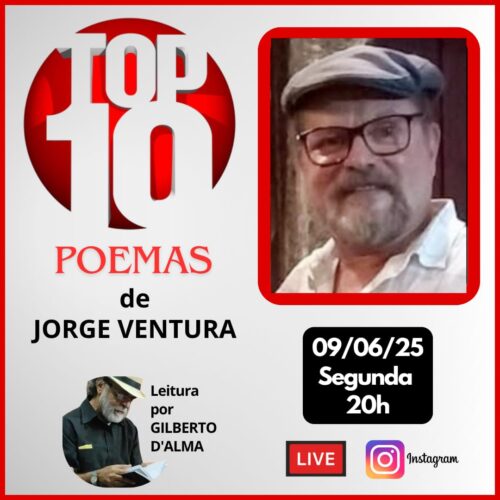 – DIA 09 DE JUNHO, ÀS 20h, estreia “TOP 10 POEMAS”, com o poeta GILBERTO D’ALMA lendo 10 dos principais poemas de um autor. Na abertura, leitura de poemas do nosso querido JORGE VENTURA. O SEXTAS POÉTICAS deseja vida longa ao projeto. Local: Live @Instagram