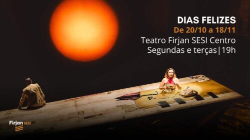 – ATÉ 18 DE NOVEMBRO, “DIAS FELIZES”, de BECKETT. Com PATRÍCIA SELONK. Direção: PAULO DE MORAES. Local: Teatro Firjan Sesi Centro. Segunda e terça, às 19h. R$ 40,00.