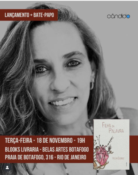 DIA 18 DE NOVEMBRO, ÀS 19h, FILHA DA PALAVRA, de HELEN QUEIROZ. Bate-papo, música, poesia, brindes. Local: Blooks Livraria, Belas Artes Botafogo, Praia de Botafogo, 316. TODOS LÁ!