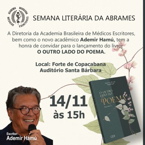 – HOJE, DIA 14 de NOVEMBRO, ÀS 15h, “O OUTRO LADO DO POEMA”, de ADEMIR HAMÚ. Local: Forte de Copacabana, auditório Santa Bárbara. IMPERDÍVEL!