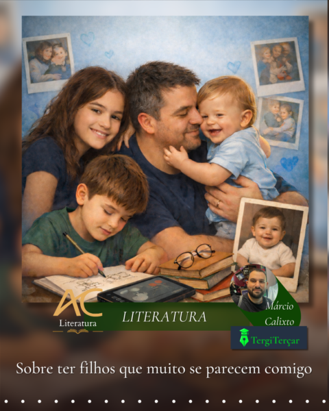 Os amigos já sabem que eu tenho 3 filhos. Deles já comentei aqui na coluna, sou pai há 18 anos, Idade que tem a minha mais velha. Depois tive o zero Dois, hoje com 8 anos. Agora há o terceiro, com 2 aninhos. Os traços físicos deles, com o tempo, foram se singularizando. Sofia tornou-se longeva e magra, com volumosos cabelos castanhos. Arthur já se mostra parrudo, de braços largos e mãos bem desenhadas. Suas pernas, já parecem de corredor. Théo ainda um neném. No entanto, suas pernas grossas e mãos muito ativas somados a um sorriso constante se mostram presentes. Mesmo de mães distintas os três, todos eles vieram muito parecidos comigo.