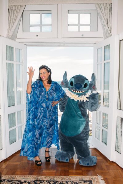 Nesta quarta-feira (30), Stitch foi flagrado na varanda do icônico hotel Copacabana Palace onde foi recepcionado por Narcisa Tamborindeguy, outro ícone carioca.