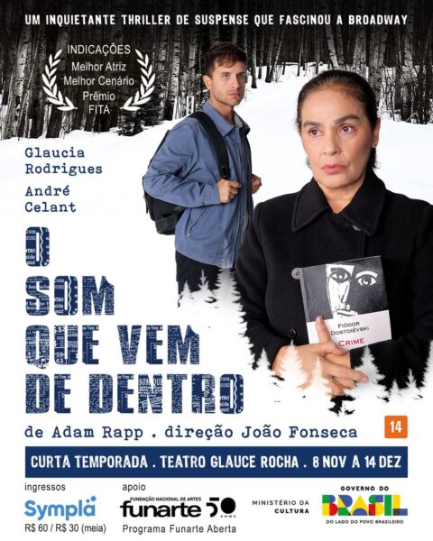 O Som que Vem de Dentro, adaptação da peça The Sound Inside, de Adam Rapp, ganha sua primeira montagem no Brasil, em temporada no Teatro Glauce Rocha, no Centro, de 08 de novembro a 14 de dezembro de 2025.