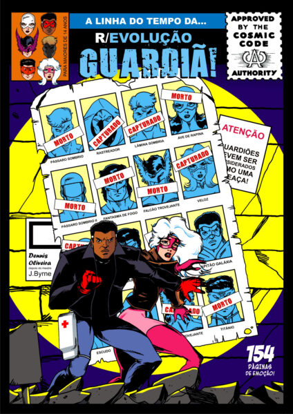 R/EVOLUÇÃO GUARDIÃ – Com prefácio de Adalberto Bernardino, essa obra revisita e revoluciona toda a cronologia da saga dos Guardiões iniciada em 1995 adequando-os aos dias atuais e mais do que isso, abrindo as portas para novas histórias e novas aventuras. Prepare-se para essa revolução na sua forma de ver os quadrinhos de superaventuras com uma temática mais madura e acima de tudo tremendamente envolvente. São 154 páginas de quadrinhos num volumão de 160 páginas e diversos extras com arte e roteiro de Dennis Oliveira. Capa e extras em cores, miolo em preto e branco, lombada quadrada.