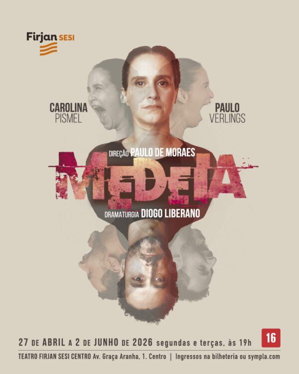 O Teatro Firjan SESI Centro recebe, a partir de 27 de abril, o espetáculo “Medeia” com dramaturgia inédita de Diogo Liberano, que se baseou nas versões de Eurípides e Sêneca, além da mitologia grega, mas começando de onde as tragédias terminam. Na construção de Liberano, Medeia interrompe o desfecho clássico e confronta, diante de Jasão, a história que ficou sem resolução. A direção de Paulo de Moraes conta com atuações marcantes de Carolina Pismel e Paulo Verlings. A temporada de estreia nacional será no Teatro Firjan SESI Centro, com apresentações às segundas e terças, às 19h, até 2 de junho.