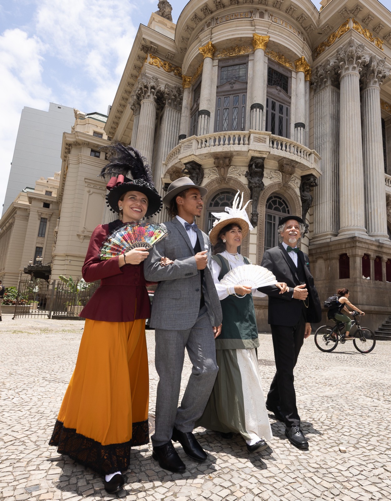 Crio roteiros para Visitas Teatralizadas desde 1997, ano que estreamos as visitas teatralizadas elaboradas para o centenário da Academia Brasileira de Letras. Há 28 anos descobri esse formato de visitação em prédios históricos que reúne estas linguagens. Gosto muito de em um momento estarmos assistindo a uma peça, respeitando o que costumamos chamar de “quarta parede” e no outro momento o público estar caminhando lado a lado com os atores e até fazendo perguntas fora do script. Atores com figurinos de época são um convite para uma volta ao tempo. E a música não podia faltar. Mais do que uma aula de história ao vivo, a proposta é que seja uma experiência de história ao vivo. Estar dentro do Theatro do Municipal era um sonho. Cada pedacinho desse prédio é uma joia. Quem não tem curiosidade de visitar esse teatro? A atual gestão do Theatro Municipal está defendendo que este palácio deve abrir suas portas e acolher as pessoas, o que também contribui bastante para que o projeto acontecesse.