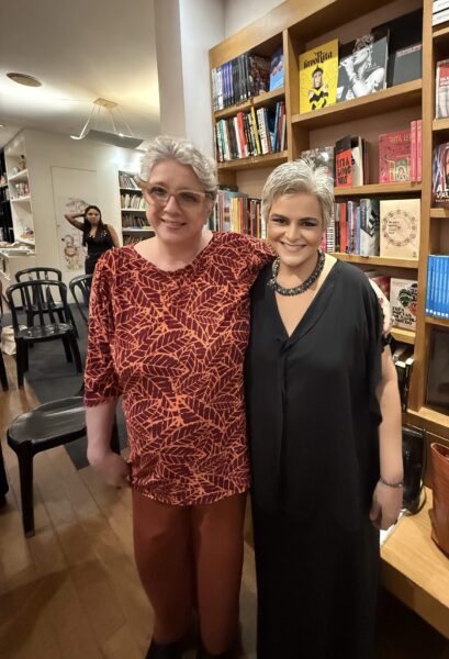Estiveram presentes muitos dos nomes que fazem e guardam a cena poética do Rio: Tanussi Cardoso (@tanussicardoso.oficial), Luiz Otávio Oliani (@luizotaviooliani), Carmen Kligman (@kligcarmen), Angela Guerra (@angela_gdeandrade), Celi Luz (@luz.celi), Mariangela Bazbuz (@literarterra), Adriano Spínola (@adrespinola), Angel Cabeza (@angelcabeyabr), Igor Calazans (@calazansigor), Sonali Souza (@sonali_souza), Paulo Sabino (@paulosabinopoeta), Ana Maria Tourinho (@anamariatourinho), Silvio Ribeiro de Castro (@silvioribeirodecastro), além do esposo da autora, Fábio Giorgi (@fotogiorgi) que prestigiou e fotografou, Vitor Vogel (@vogel_vitor) que fez a documentação fotográfica geral do evento e tantos outros que compõem essa constelação literária viva. E também eu, essa que vos fala, Chris Herrmann (@_chrisherrmann), que tive a alegria de fazer a cobertura jornalística para o Portal ArteCult.com — e entrevistar Thereza em uma conversa que atravessou décadas de criação, memórias e renascimentos poéticos.