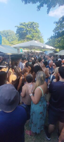 Evento gratuito em um ambiente ao ar livre, com acesso facilitado pela estação de metrô Flamengo, além da opção de transporte por aplicativo e a presença de estacionamento rotativo no local foi a receita infalível para um belo programa de final de semana! Talvez não estivessem esperando tamanha demanda. Refaço: talvez não, certamente não esperavam! Afinal, era o primeiro evento do tipo naquele local, não havia experiência anteriores que pudessem nortear a escolha do espaço, a disposição dos expositores etc. E, para agravar ainda mais a situação, fazia um belo dia de sol carioca, emoldurando e tornando ainda mais incrível o visual do Aterro do Flamengo…