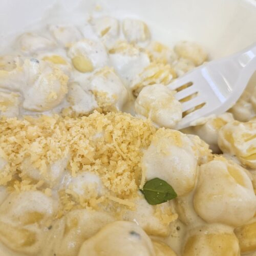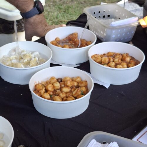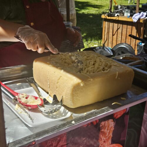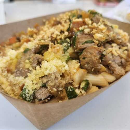 A promessa era de que, entre  os principais atrativos, estariam massas frescas preparadas na hora e uma variedade de sobremesas tradicionais e vinhos. Além disso, a programação cultural incluía apresentações de danças típicas, como a tarantela, e shows de música ao vivo e brinquedos infláveis, como pula-pula e tobogã, para o público infantil.Sábado ensolarado, cheguei no evento pouco depois do horário de abertura. Apesar de ser o primeiro dia, quando tudo é novidade, ainda estava fácil de caminhar pelo espaço, não havia tanta gente assim e deu pra ter uma ideia de tudo o que era oferecido. Porém, com o passar do tempo, o fluxo de pessoas aumentou consideravelmente e tornou-se uma tarefa hercúlea e penosa acessar os pontos de venda, demandando paciência. Filas intermináveis começaram a se formar, algumas vinham se acumulando, causando uma confusão generalizada. Estava realmente difícil acessar o que se queria, seja pela falta de organização ou por filas que se atrapalhavam entre si. Chegou um momento que já não estava sendo possível ter um acesso decente ao que se queria comer, restando a opção, mais viável, de procurar algum lugar que estivesse menos cheio. Isso sem contar que vários dos estabelecimentos, muitos antes do horário final previsto (20h), já apresentavam falta de um ou vários itens. Aconteceu, inclusive, comigo: depois de muuuiiitooo tempo em uma fila para pegar cannoli e tiramisú, quando enfim cheguei, já não tinha – e ainda eram 14h…