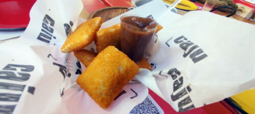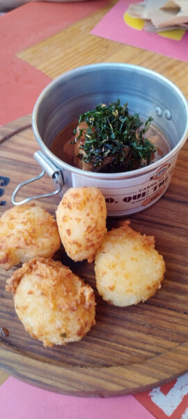 Para acompanhar, pedi um outro petisco, umas almofadinhas de queijo com molho de goiabada, elaborado com ingrediente de um patrocinador do concurso, que estava muito gostoso.