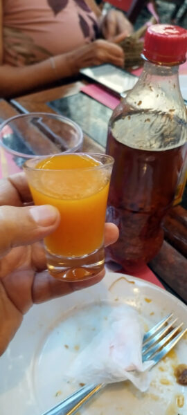 Eles nos serviram com uma cachacinha especial, como cortesia de boas vindas. Muito simpático!