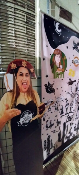 Um prato cheio das referências culturais da Tati, com quem, óbvio, pedi pra tirar uma foto…