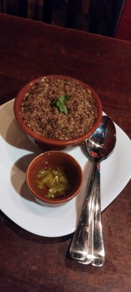 Como da outra vez, não deu pra escapar de uma das deliciosas batidinhas da casa, que são feitas com muito carinho e cuidado. E, é lógico, a pimentinha da casa já veio pra mesa. Aliás, esse foi um cuidado que tive, sempre pedindo por ela nos bares…