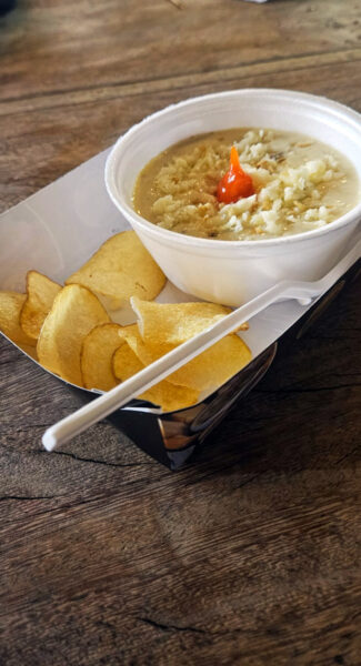 Aqui, ao invés de pedir o petisco participante – que, certamente, deveria estar uma delícia! – optei por um outro. Sim, todos os bares participantes, além do prato do concurso, trouxeram outros, o que aumentou significativamente o rol de possibilidades, atendendo a todos os gostos. O CEVINA, por exemplo, além do petisco CDB, trouxe um Bolinho de Feijoada e uma Batata Crock. E foi essa última a minha opção – aliás, fazendo justiça, foi uma (imperiosa) decisão da minha filha… Mas estava show! Valeu a pena!