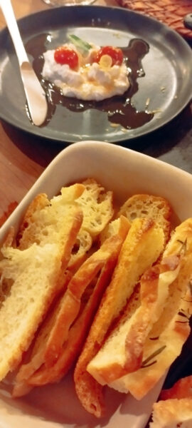 Tudo começa com entradinhas maravilhosas, que vão preparando o paladar para a aventura gastronômica. Desde a focaccia, crocante na medida, acompanhada de um creme azedo – que mais parece uma burrata! – seguindo o queijo brie com tomates confitados e uma deliciosa caponata. Tudo perfeito! E mais: acompanhado de chope, refrigerante e água à vontade! Como se não bastasse, não é cobrado taxa de rolha e o seu vinho e muito bem-vindo…