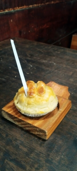 Como eu já sabia, na praça se encontra a PÃO E PÃO – EMPADAS DE NOGUEIRA (@paoepaoempadas), que serve há 35 anos, segundo a tradição, a melhor empada da região serrana do Rio de Janeiro! É um misto de delicatessen e bistrô que funciona desde 1988 e vende desde bolo de rolo, suspiros e tortas até cervejas e vinhos. Mas a estrela da casa é, indiscutivelmente, a empada.
