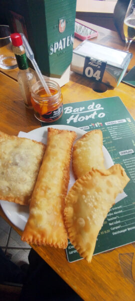 Depois fui pra Itaipava, terceiro distrito do município de Petrópolis. conhecido como refúgio de inverno de diversas celebridades e da alta sociedade do Rio de Janeiro e que abriga diversos clubes de campo, restaurantes e algumas das melhores casas noturnas da Região Serrana. Fui ao conhecido BAR DO HORTO (@bardohortoitaipava), que é um verdadeiro point entre petropolitanos e turistas e oferece uma grande variedade de cervejas artesanais, pastéis dos mais variados sabores e muitos outros tipos de lanches e bebidas. E, por falar em pastel, não poderia deixar de experimentar, já que o estabelecimento é bastante famoso por eles. O formato até pode variar, mas é certo que a união de uma massa crocante com o sabor diferenciado do recheio dão água na boca!
