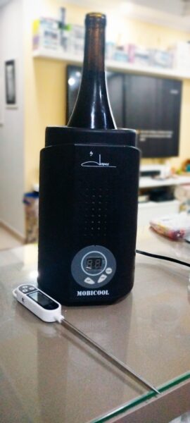 Me certifiquei de que atingiria a temperatura ideal de serviço, conforme as instruções que recebi. Queria seguir à risca tudo certinho, pra garantir que o nível da experiência fosse a melhor possível. Marquei a temperatura em todos os instrumentos – termômetro, refrigerador individual.