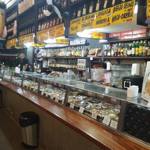 Achei muito interessante a história desse legítimo representante do botequim carioca ter sido “salvo”, em 2010, por um grupo de clientes fiéis – Marcelo Paulos, Heitor Linhares e Ricardo Martins – após a morte do último sócio fundador, principalmente mantendo aquilo que o tornou tão famoso: seu grande balcão de vidro refrigerado repleto de acepipes variados. Além dele, são sete mesas de madeira dispostas pelo salão, com banquetas fixas e prateleiras cheias de garrafas. E muita – muita! – gente lotando o lugar…