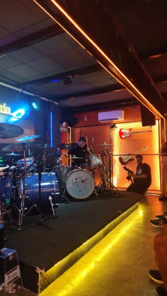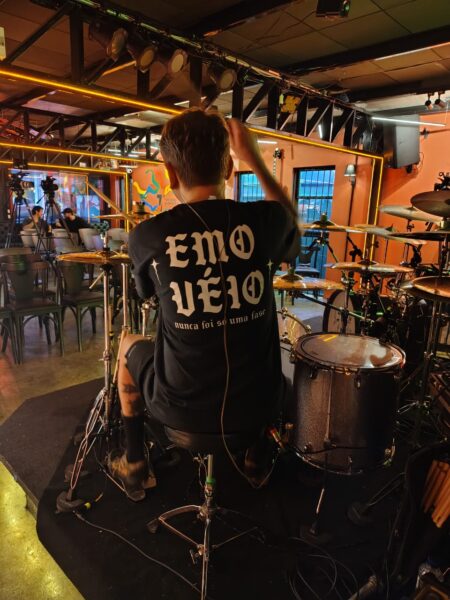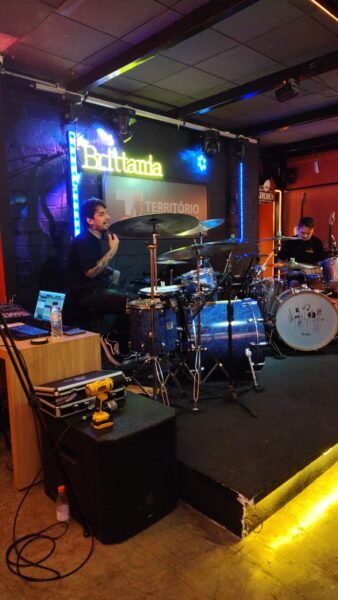 Alexandre começou tocar bateria aos 15 anos de idade de forma autodidacta, fez algumas aulas com o Aquiles Priester (presente no local ), foi convidado a integrar a banda do Edu Falaschi mas escolheu o pense como banda principal.